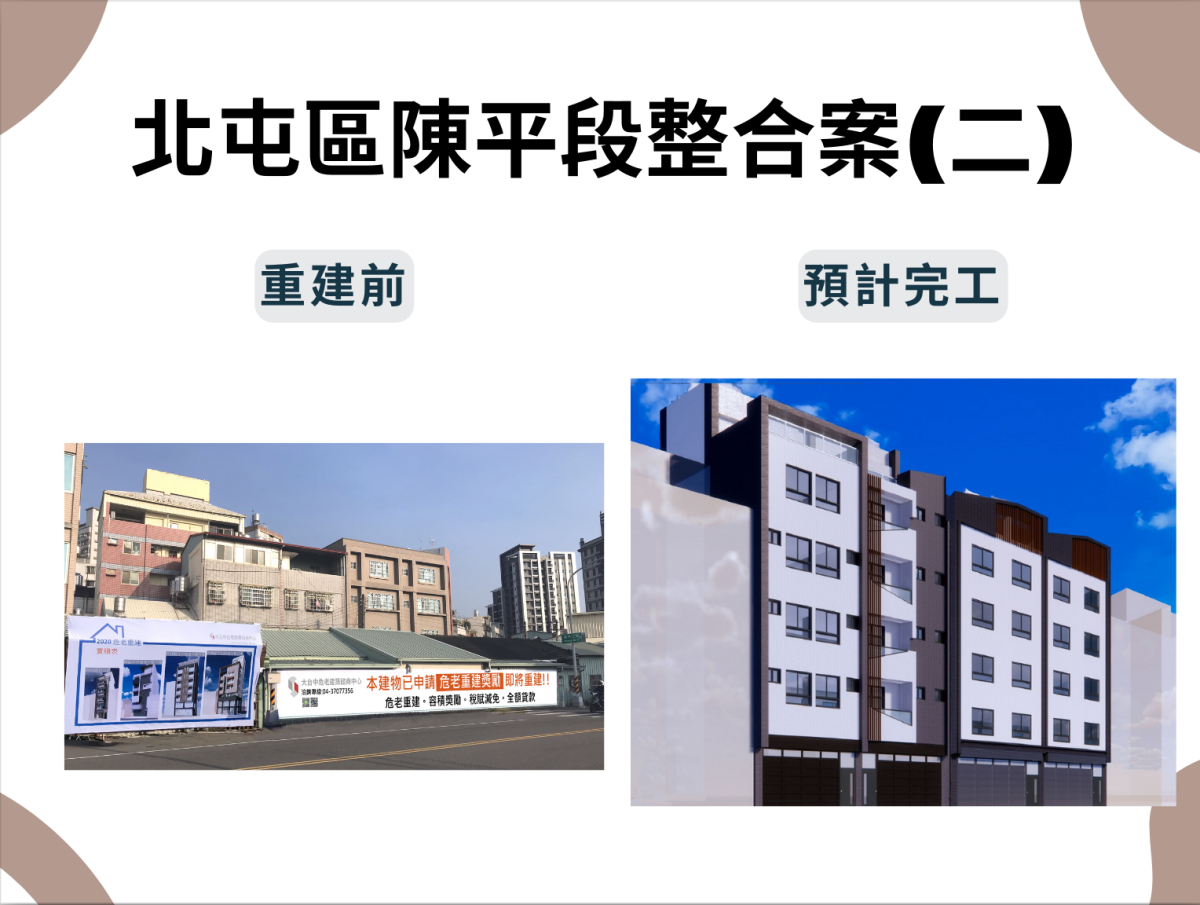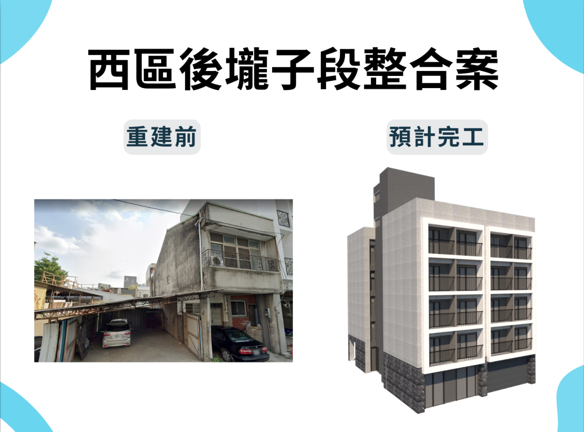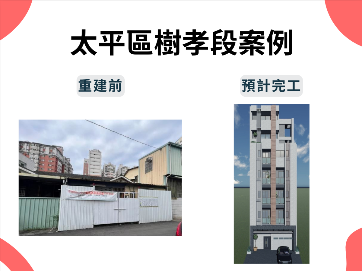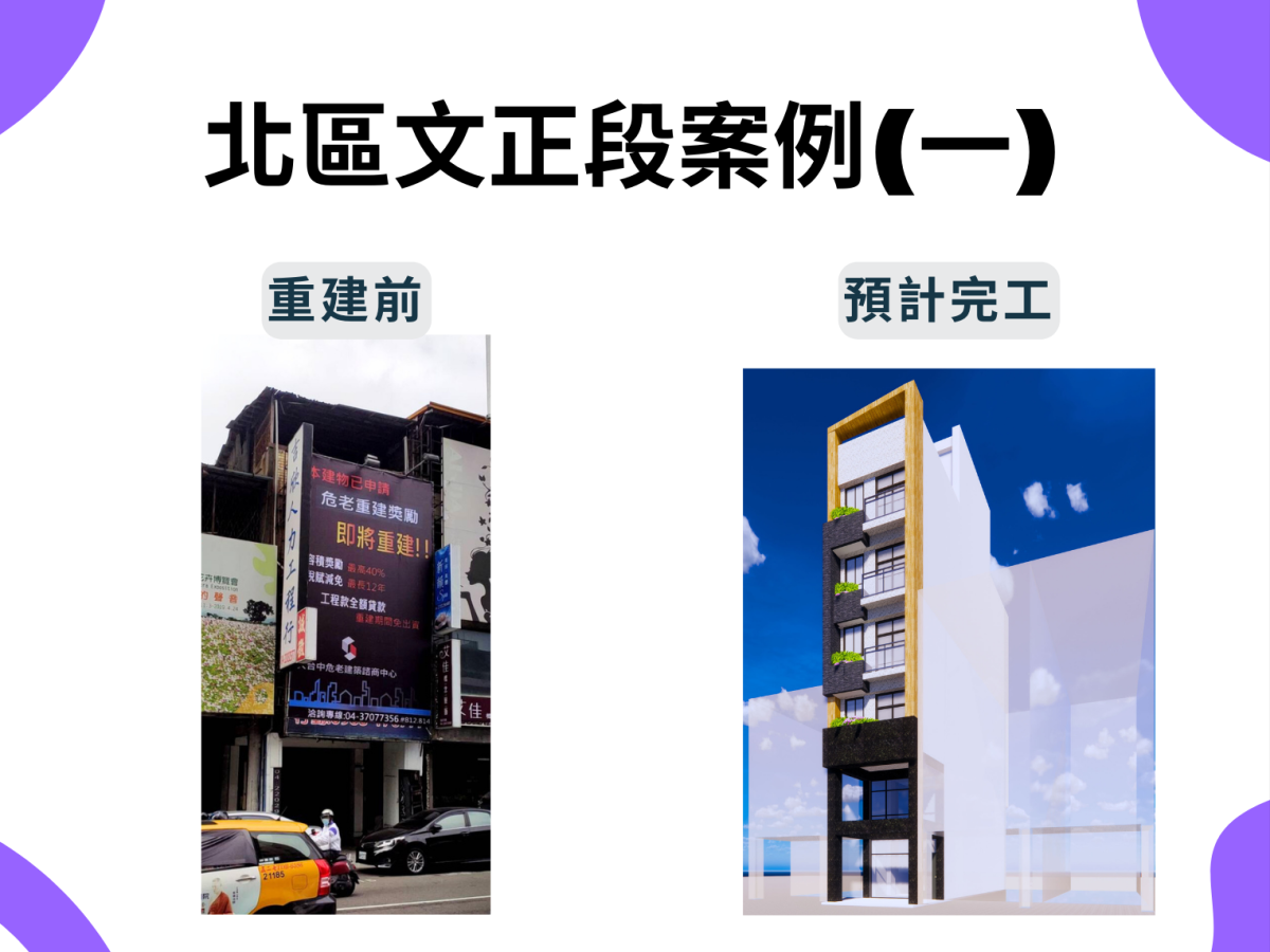 大台中危老建築諮商中心,致力於推動都市更新,再造都市景觀,協助民眾瞭解危老重建條例並對自身擁有的土地價值有更進一步的認識。