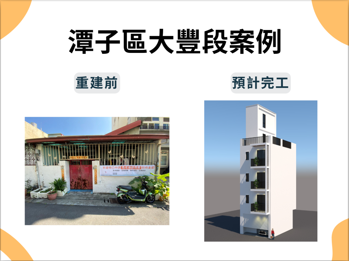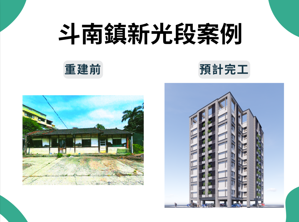 基地面積太小而被「都市更新」排除的小基地也可以進行重建,解決危險及老舊建築物的問題。